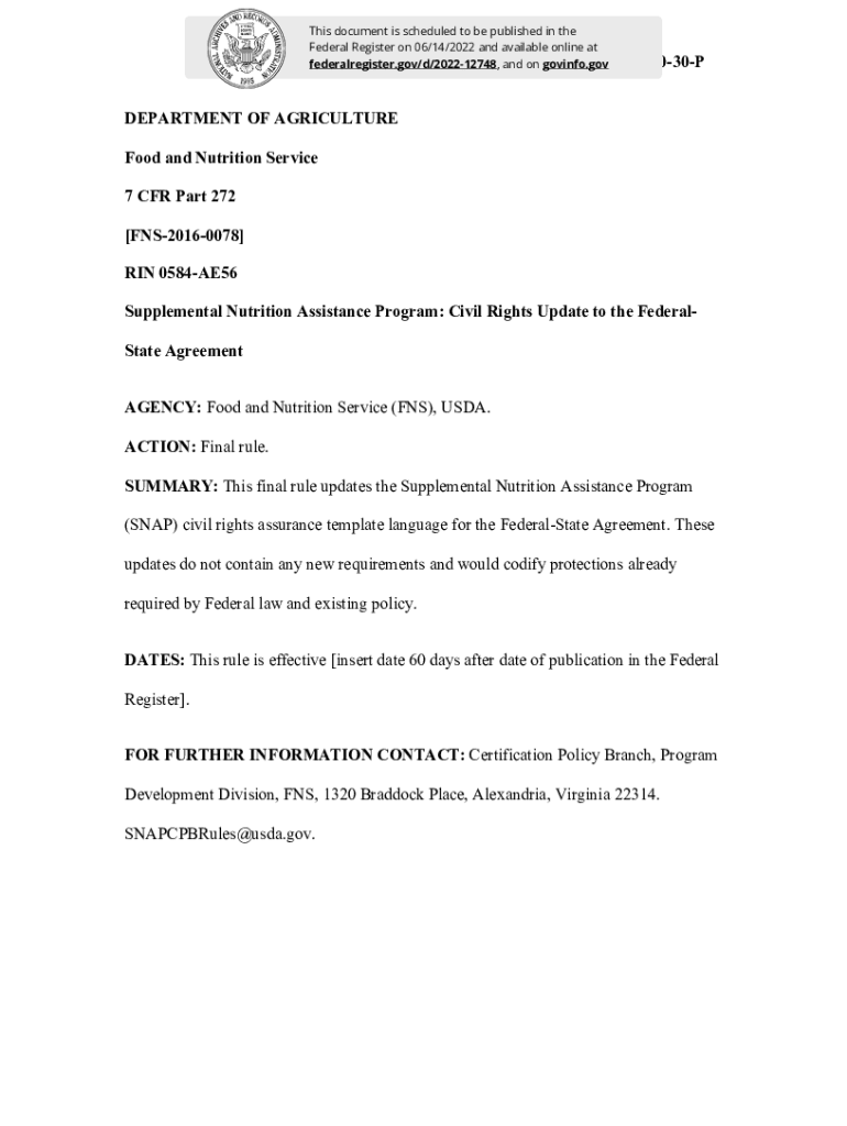This document is scheduled to be published in the Federal Register on 06/14/2022 and available online at Code: federalregister.gov/d/202212748, and billing gov info.gov341030PDEPARTMENT OF AGRICULTURE