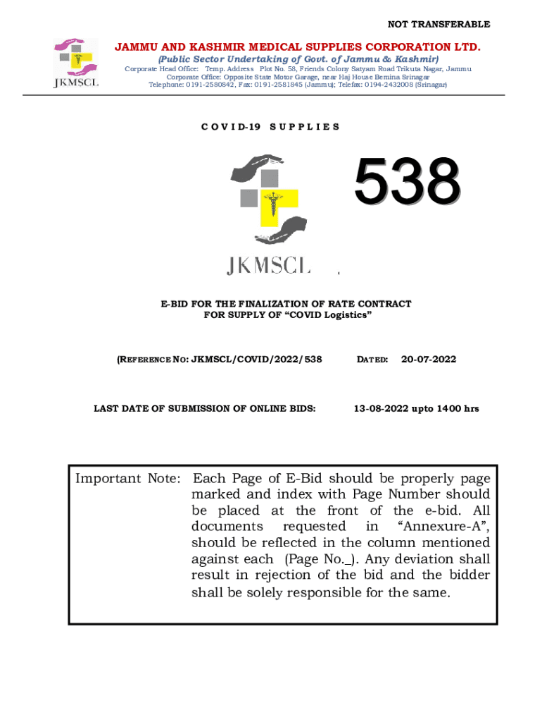 Get the free not transferable jammu and kashmir medical supplies