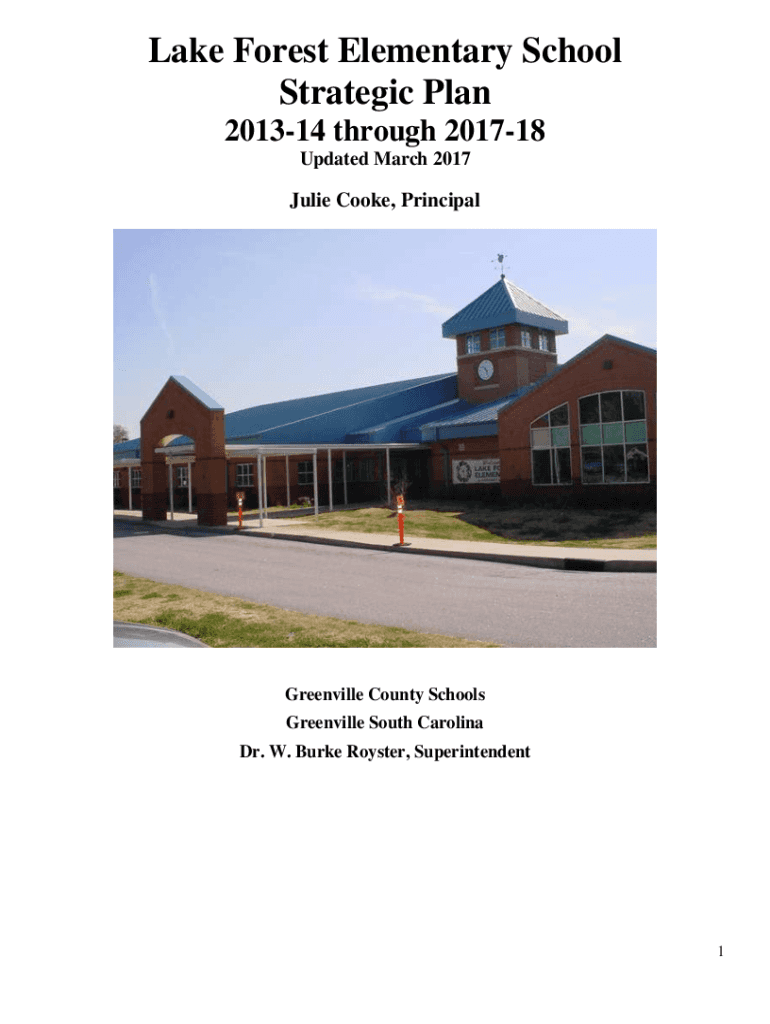 Lake Forest Elementary School Strategic Plan 201314 through 201718 Updated March 2017Julie Cooke, Principal Greenville County Schools Greenville South Carolina Dr. W. Burke Roster, Superintendent1SCHOOL