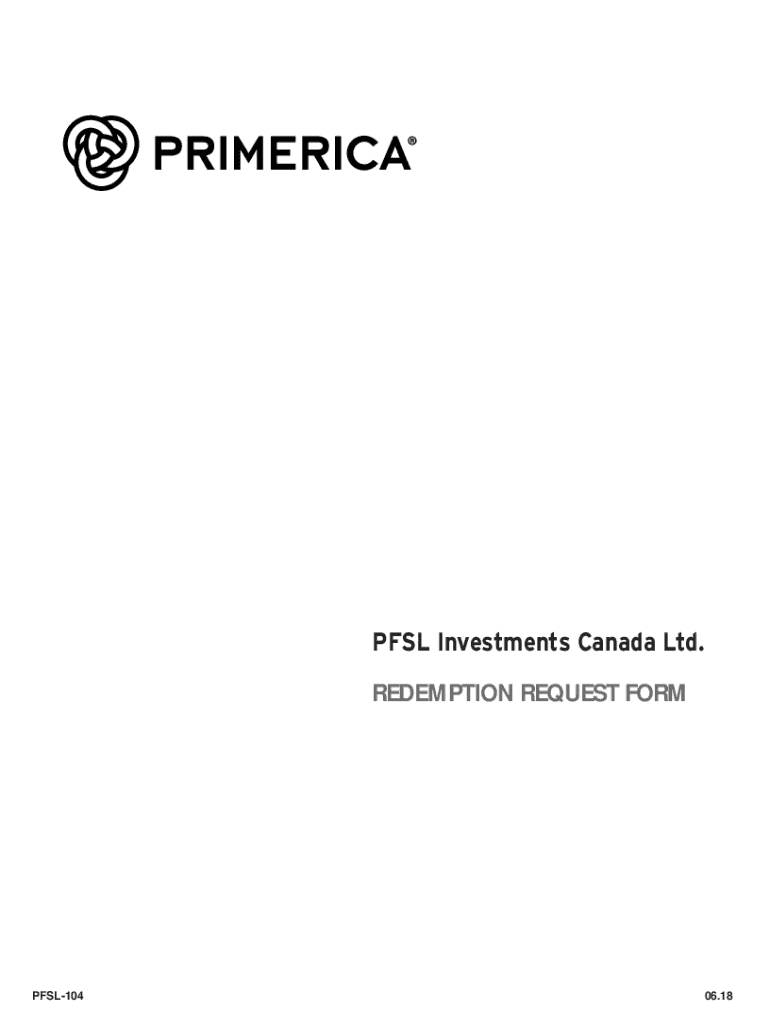 PSL Investments Canada Ltd. REDEMPTION REQUEST FORMPFSL104Copy 1 Miscopy 2 Branch OfficeCopy 3 Client06.18FOR HEAD OFFICE USE 1. Fund Company:Account #:2. Owner Information:Last NameInitial(s)Joint
