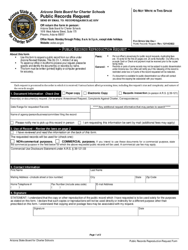 Get the free Public Records Request FormState Board for Charter Schools - asbcs az