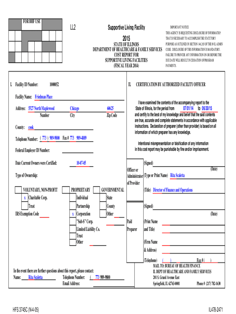 FOR BHF USELL2Supportive Living FacilityIMPORTANT NOTICE THIS AGENCY IS REQUESTING DISCLOSURE OF INFORMATION THAT IS NECESSARY TO ACCOMPLISH THE STATUTORY PURPOSE AS OUTLINED IN SECTION 146.265 OF