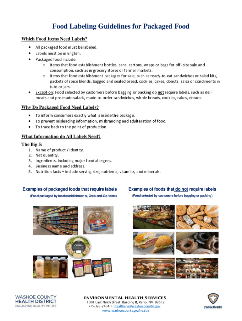 Food Labeling Guidelines for Packaged Food Which Food Items Need Labels? All packaged food must be labeled. Labels must be in English. Packaged food include: o Items that food establishment bottles,
