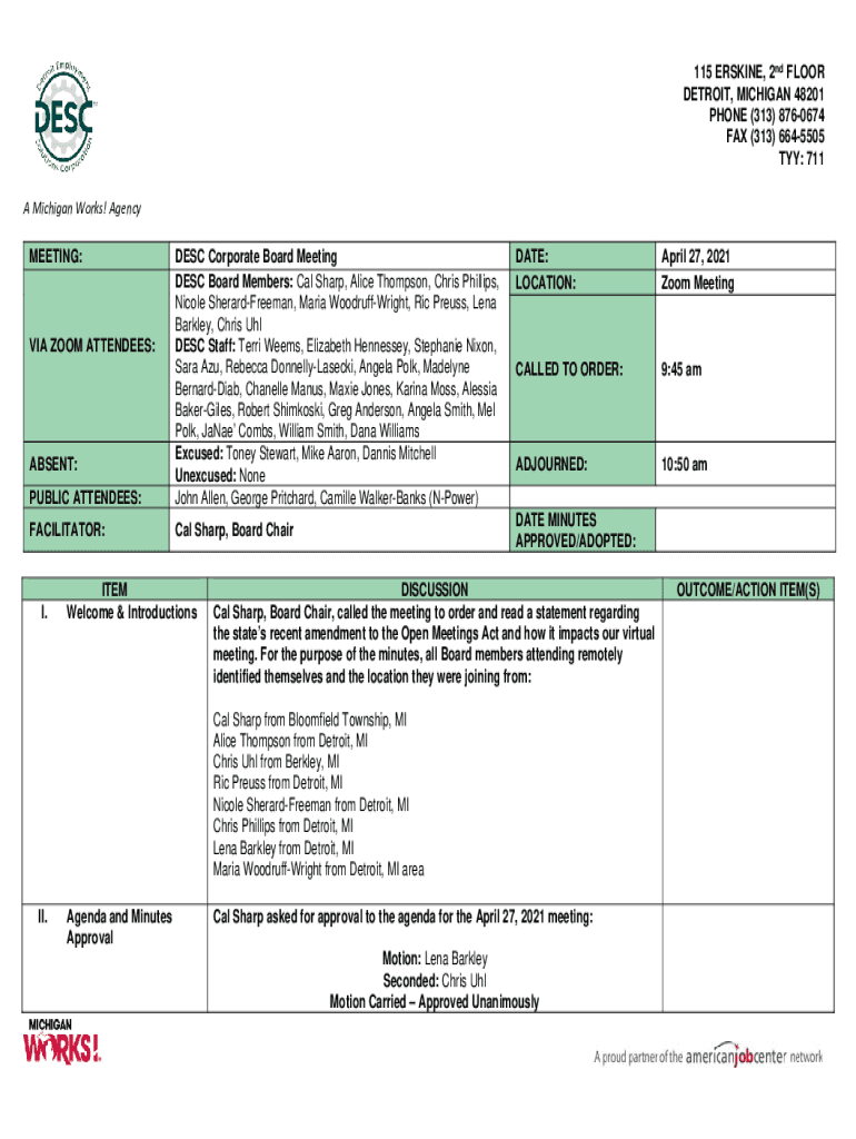 MEETING:PUBLIC ATTENDEES:DISC Corporate Board Meeting