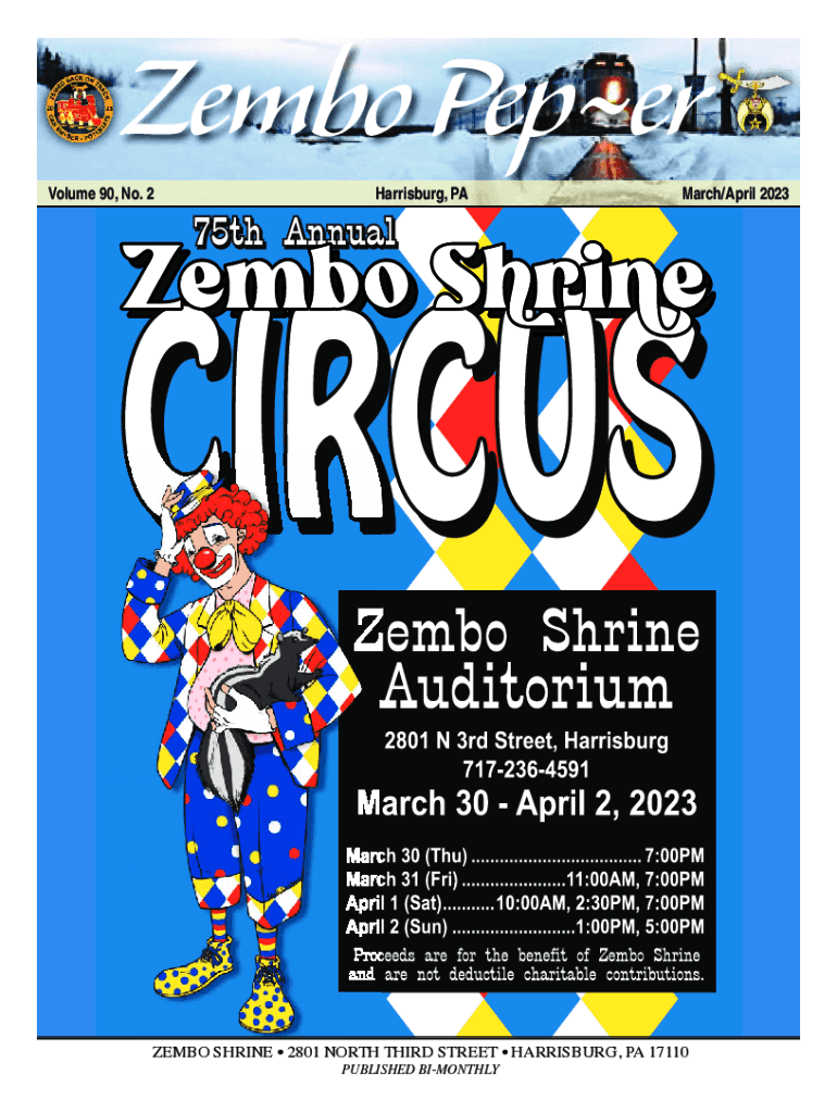 Zero PeperVolume 90, No. 2Harrisburg, PA March/April 2023ZEMBO SHRINE 2801 NORTH THIRD STREET HARRISBURG, PA 17110