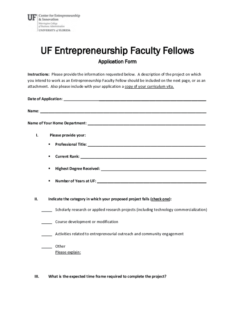 OF Entrepreneurship Faculty Fellows Application Form Instructions: Please provide the information requested below. A description of the project on which you intend to work as an Entrepreneurship Faculty