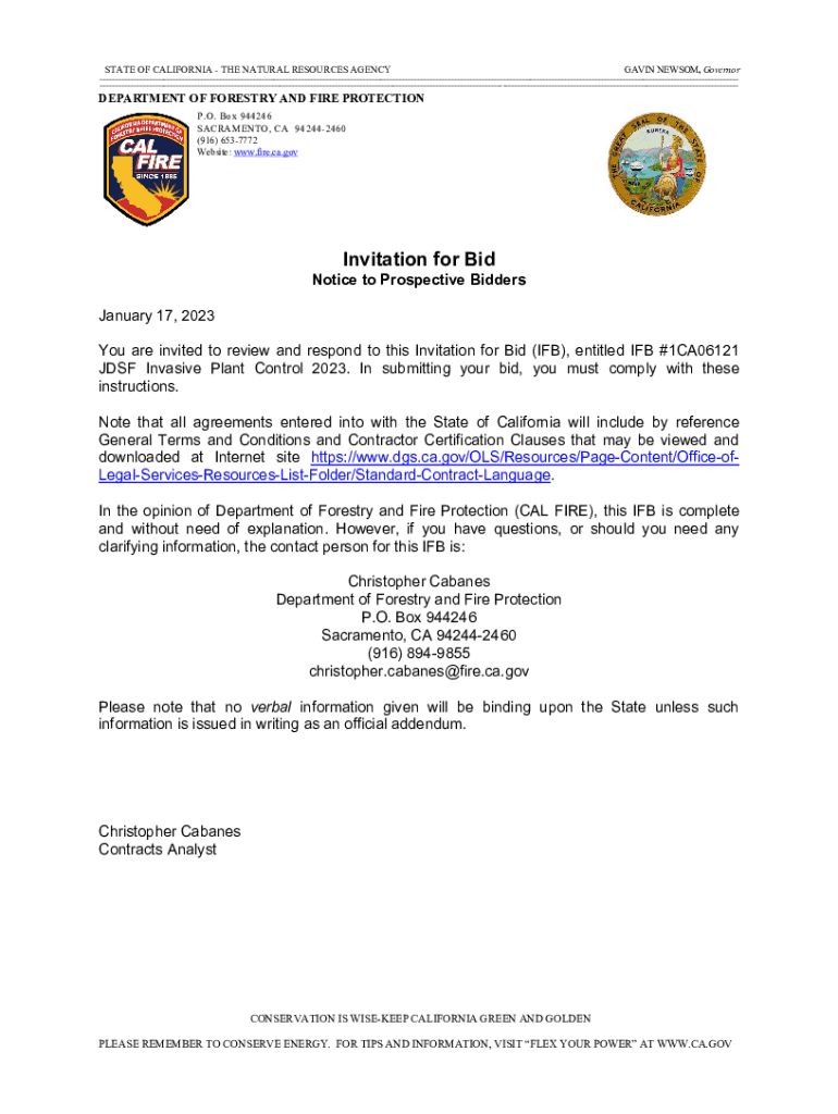 STATE OF CALIFORNIA THE NATURAL RESOURCES AGENCY GAVIN NEWSOM, Governor DEPARTMENT OF FORESTRY AND FIRE PROTECTION P