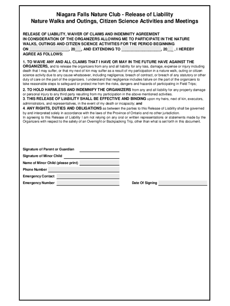 Get the free Release of Liability Nature Walks and Outings, Citizen Science ...