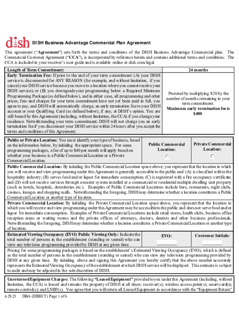DISH Business Advantage Commercial Plan Agreement This agreement (Agreement) sets forth the terms and conditions of the DISH Business Advantage Commercial plan. The Commercial Customer Agreement (CCA),