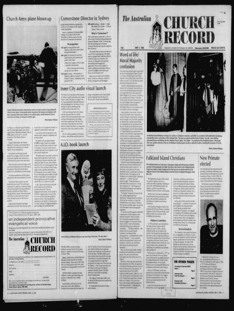 Church Army plane blown cornerstone Director in Sydney Laurie McIntosh will be in Sydney this month at the invitation of the Anglican Youth Department Laurie is a graduate of Emma us Bible College;