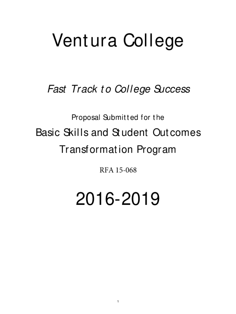 Ventura College Fast Track to College Success Proposal Submitted for thematic Skills and Student Outcomes Transformation Program RFA 150682016201912016 Basic Skills and Student Outcomes Transformation