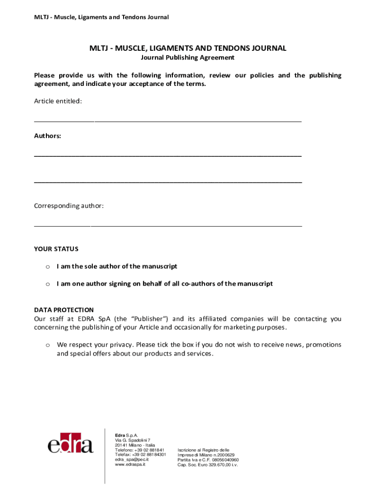 MLCJ Muscle, Ligaments and Tendons Journalist MUSCLE, LIGAMENTS AND TENDONS JOURNAL Publishing Agreement