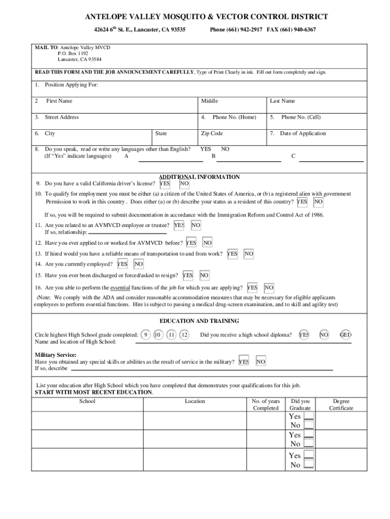 Get the free Antelope Valley Mosquito & Vector Control District * Ph 661-942-2917 * Fax 6...