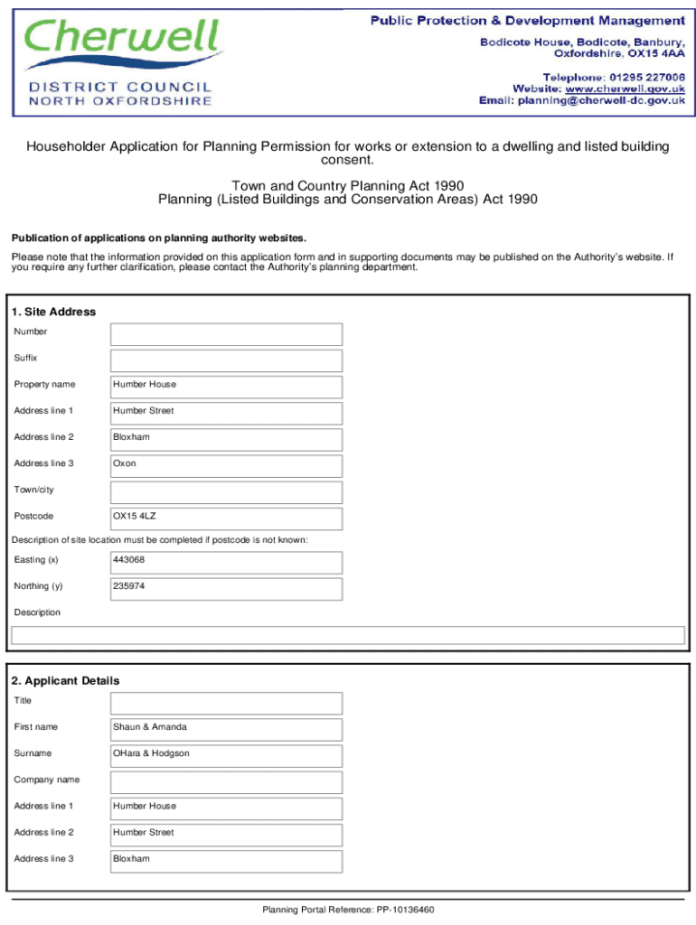 Householder Application for Planning Permission for works or extension to a dwelling and listed building consent. Town and Country Planning Act 1990 Planning (Listed Buildings and Conservation Areas)
