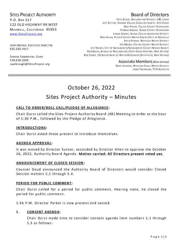 Get the free Joint Site Reservoir Committee & Authority Board