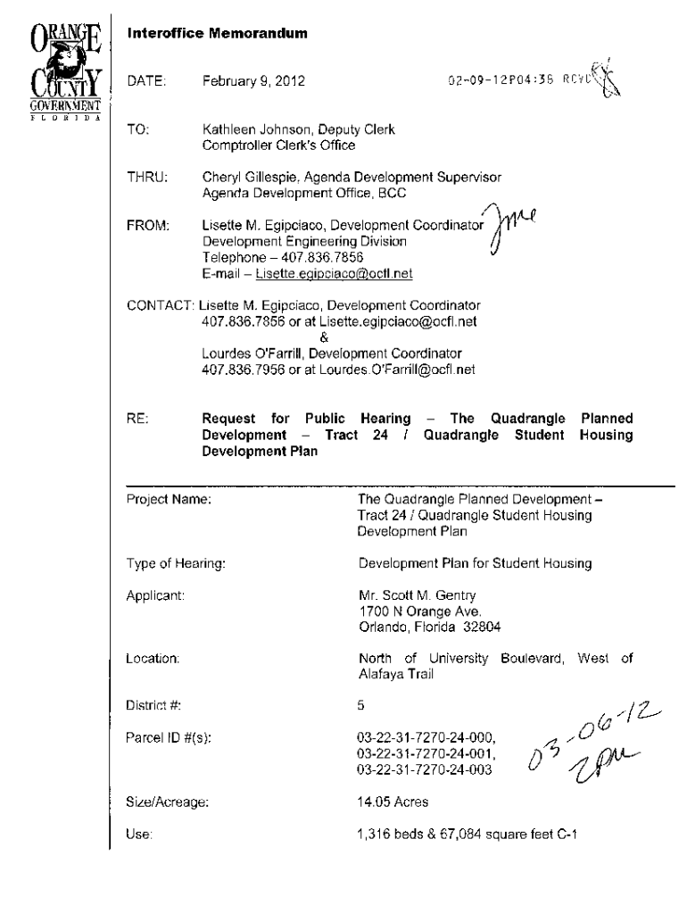 Interoffice Memorandum 10 20 9 1 2 P0 4 : 3 8DATE:February 9, 2012TO:Kathleen Johnson, Deputy Clerk Comptroller Clerk\'s Officer:Cheryl Gillespie, Agenda Development Supervisor Agenda Development