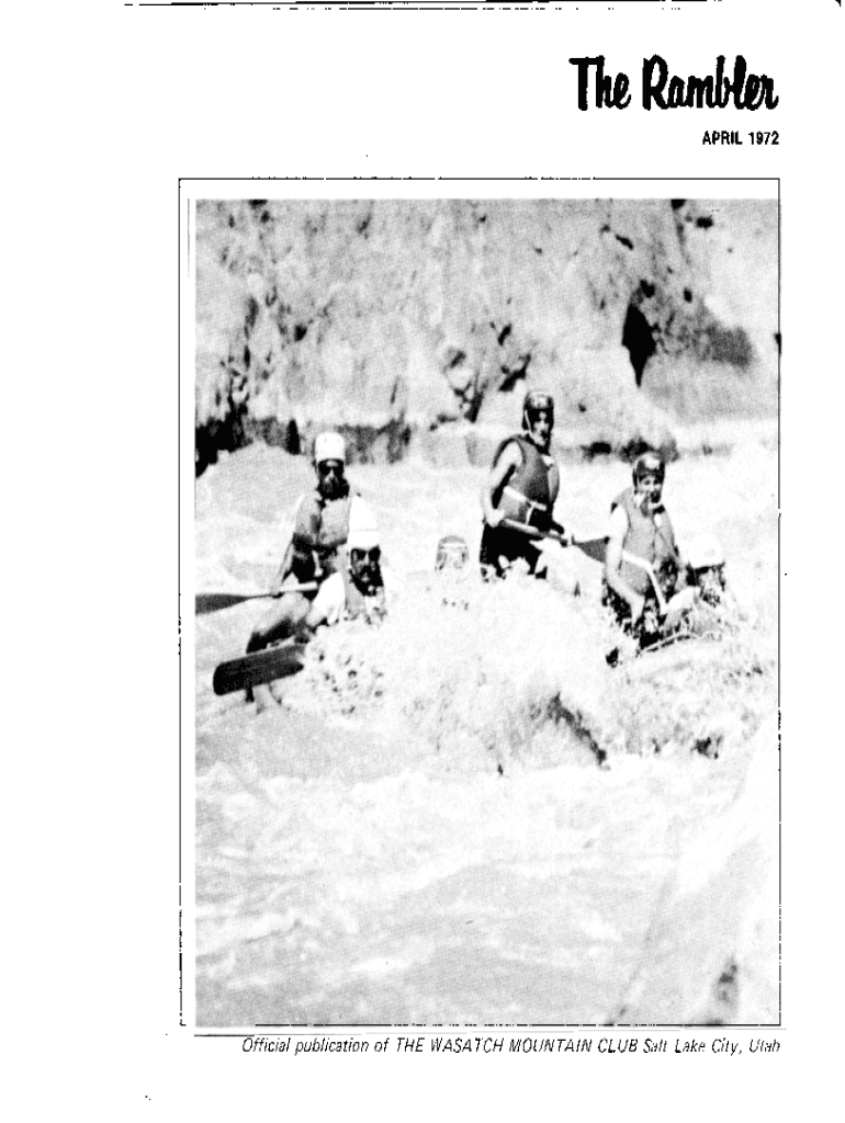 APRIL 1972Official publication of THE WASATCH MOUNTAIN CLUB Salt Lake City, UtahIllapn REGISTRATION INFORMATION: Registration is generally not required for members participating in easy or intermediate