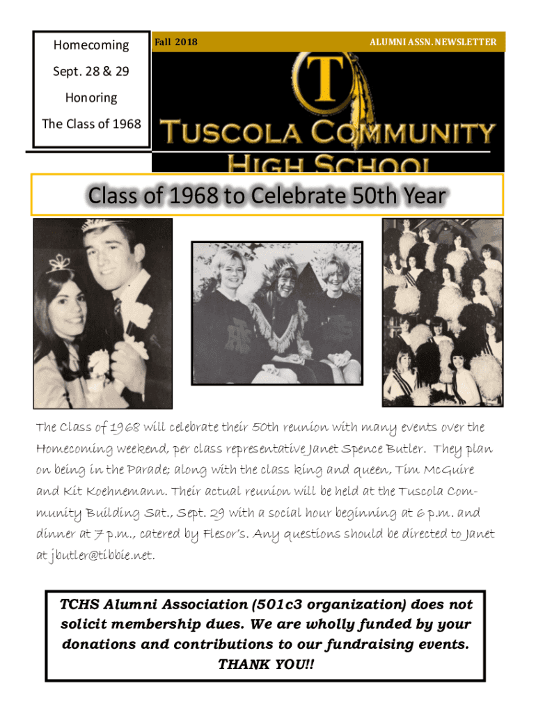 HomecomingFall 2018ALUMNI ASSN. NEWSLETTER Sept. 28 & 29