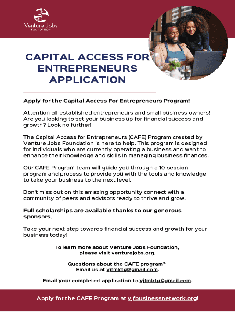 CAPITAL ACCESS FOR ENTREPRENEURS APPLICATION Apply for the Capital Access For Entrepreneurs Program! Attention all established entrepreneurs and small business owners! Are you looking to set your