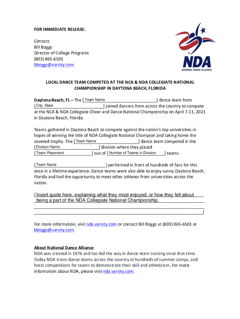 Get the free NCA & NDA College Nationals Press Release Post-Event