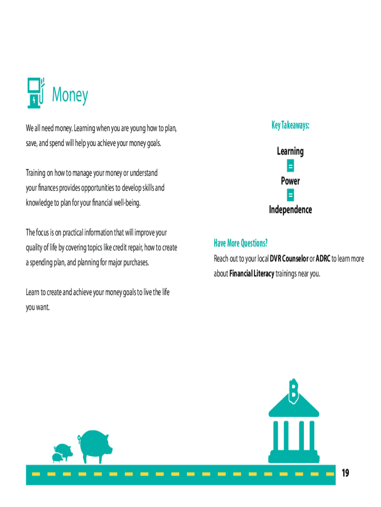 Money Key Takeaways:We all need money. Learning when you are young how to plan, save, and spend will help you achieve your money goals. Learning Power IndependenceTraining on how to manage your money