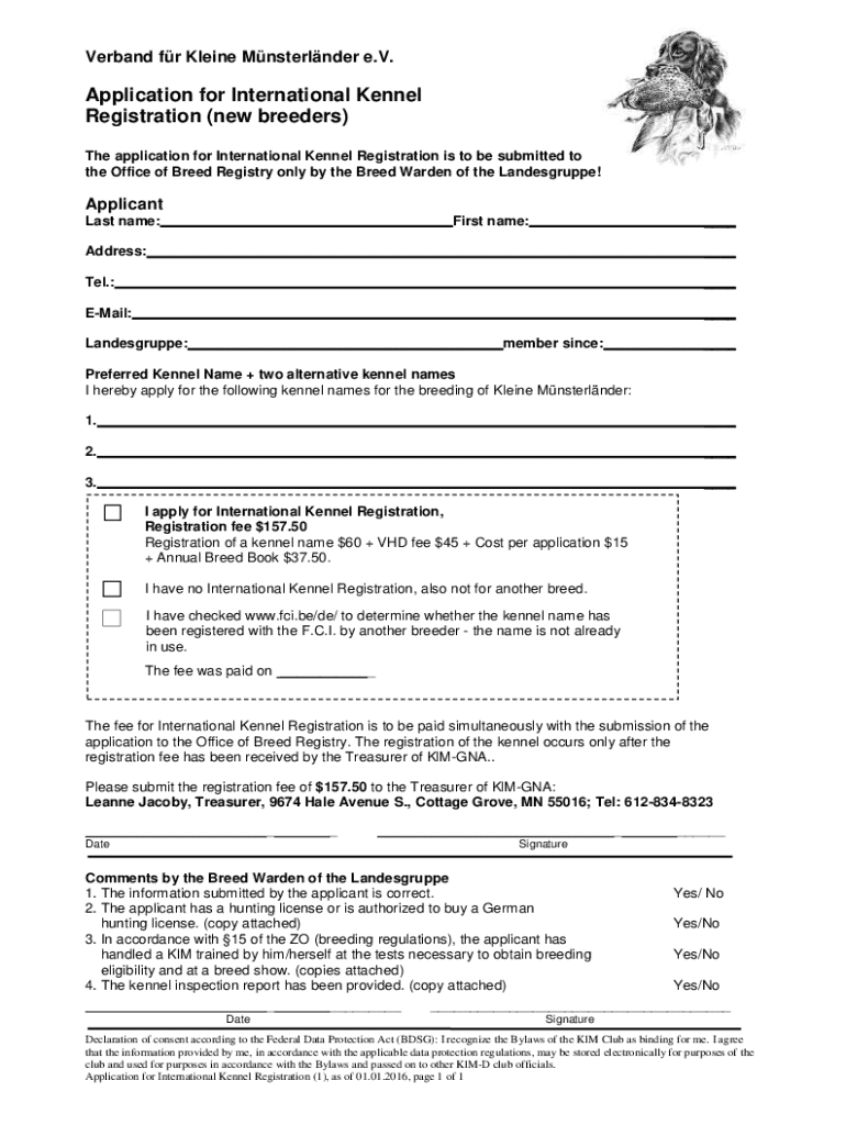 Get the free Application for International Kennel Registration (new breeders)