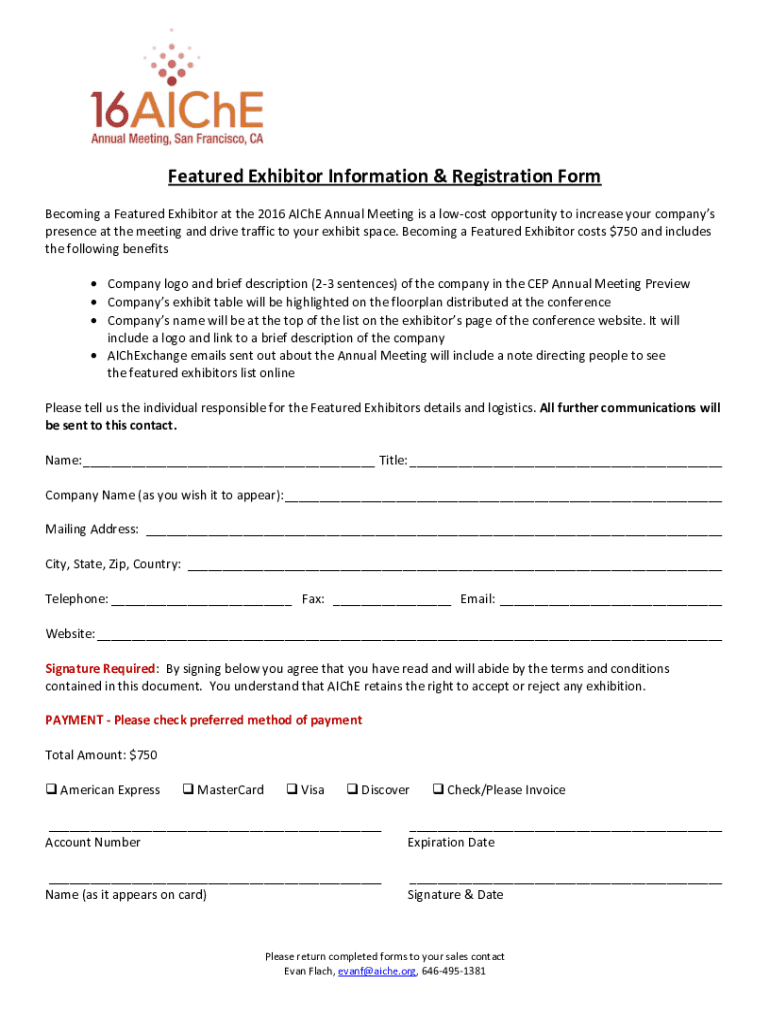 Get the free Featured Exhibitor Information & Registration Form