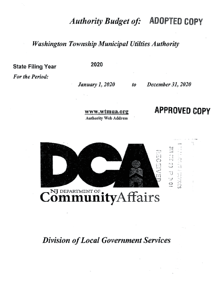 Authority Budget of:ADOPTED Washington Township Municipal Utilities AuthorityState Filing Year2020For the Period:January 1, 2020www.WTA.org
