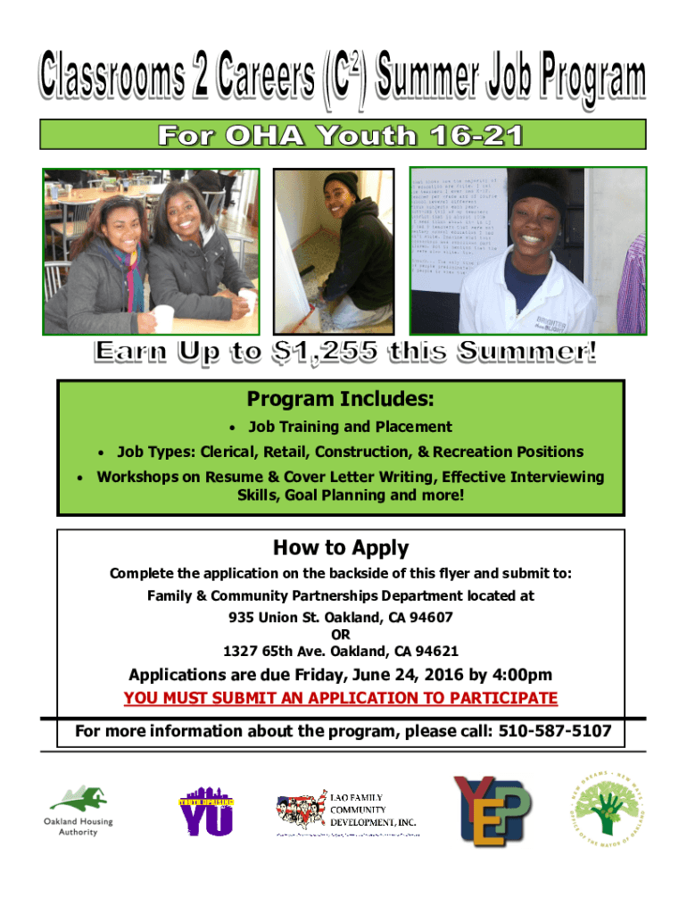 Program Includes: Job Training and Placement Job Types: Clerical, Retail, Construction, & Recreation PositionsWorkshops on Resume & Cover Letter Writing, Effective Interviewing Skills, Goal Planning