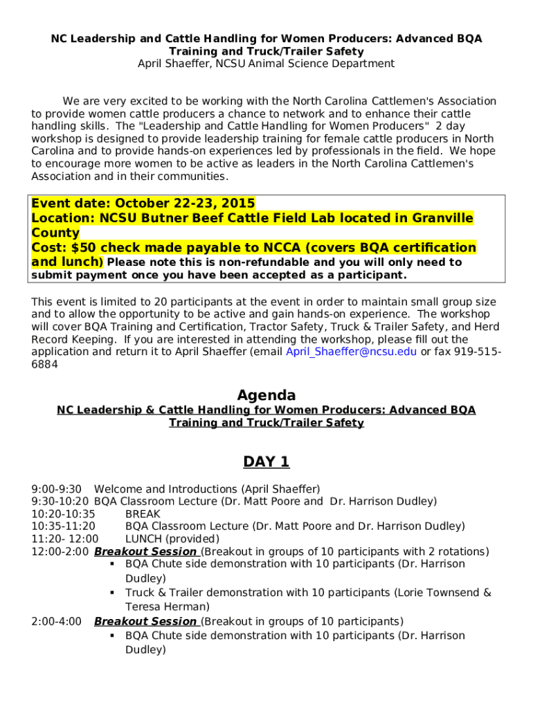 What is NC Leadership & Cattle Handling for Women Producers - harvest cals ncsu Form?