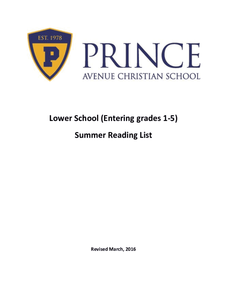 Lower School (Entering grades 15) Summer Reading Distressed March, 2016Dear Lower School Parents, It is our sincere desire that the PACS summer reading program will develop in your child a love for