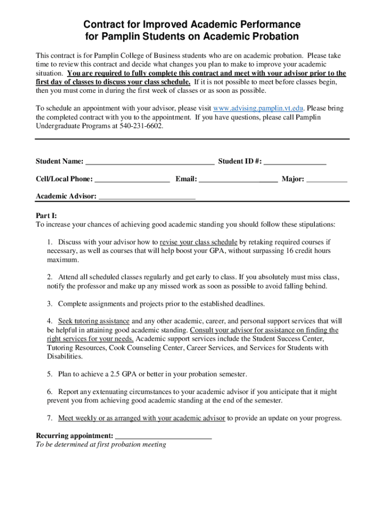 Contract for Improved Academic Performance for Sampling Students on Academic Probation This contract is for Sampling College of Business students who are on academic probation. Please take time to