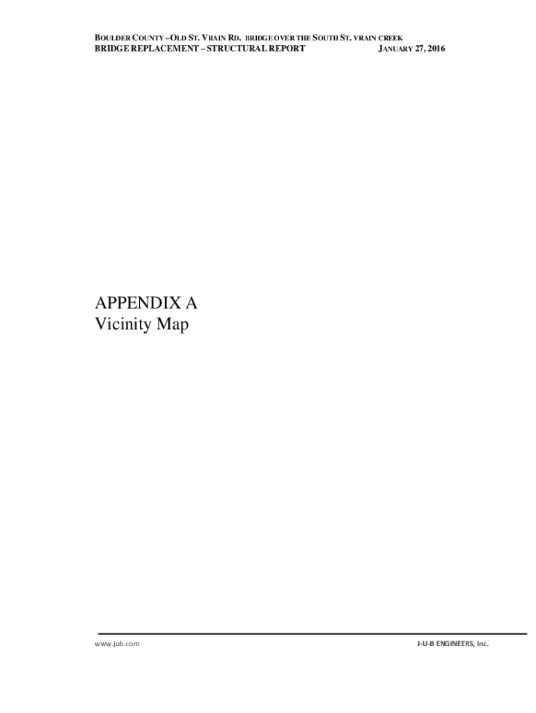 BOULDER COUNTY OLD ST. TRAIN RD. BRIDGE OVER THE SOUTH ST. TRAIN CREEK JANUARY 27, 2016, BRIDGE REPLACEMENT STRUCTURAL REPORTAPPENDIX A Vicinity Map.job.comb ENGINEERS, Inc. BOULDER COUNTY OLD ST.