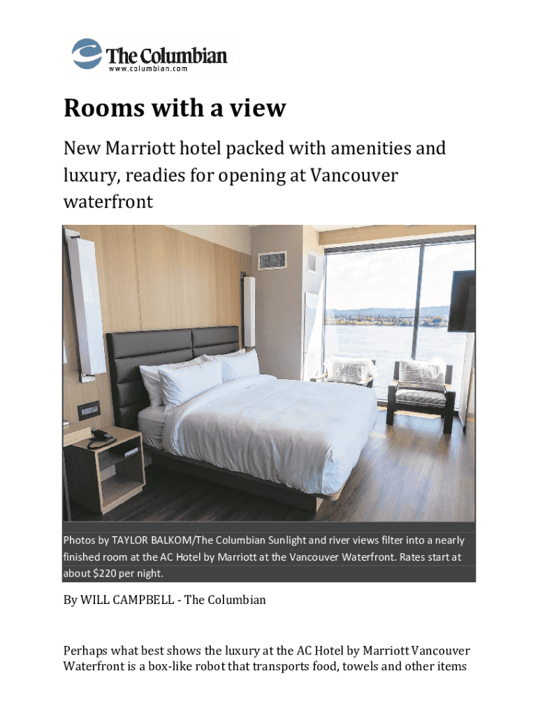 Rooms with a view New Marriott hotel packed with amenities and luxury, readies for opening at Vancouver waterfrontPhotos by TAYLOR BALK OM/The Columbian Sunlight and river views filter into a nearly