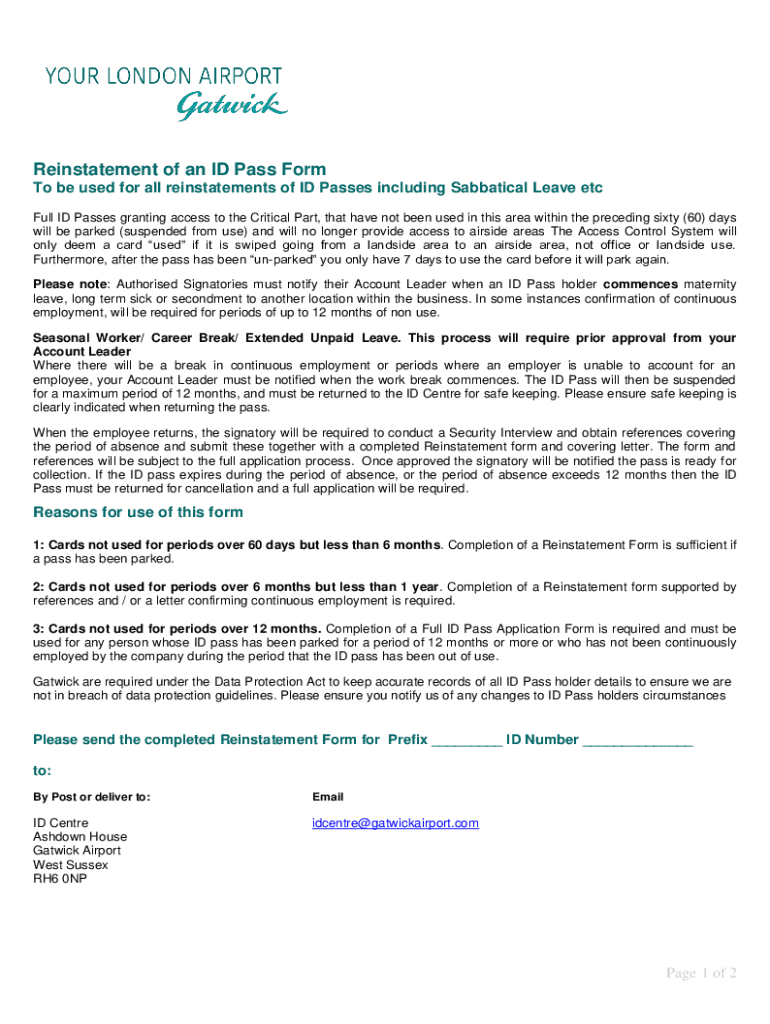 Get the free Reinstatement of an ID Pass Form