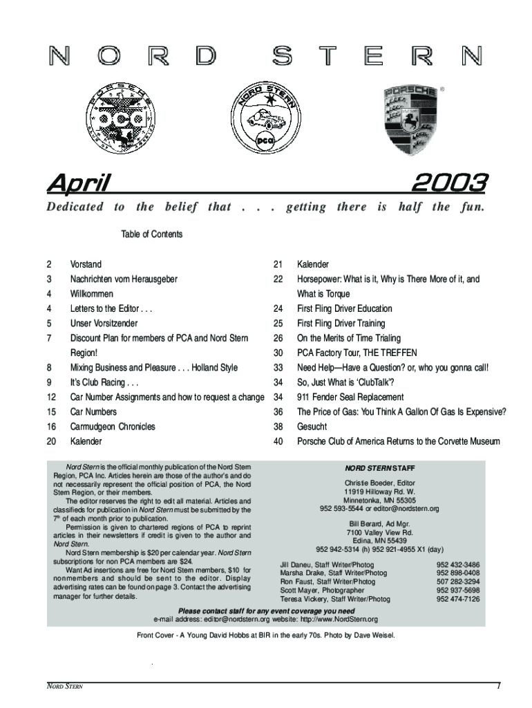 April2003Dedicated to the belief that. . . Getting there is half the fun. Table of Contents 2 3Vorstand Nachrichten com Herausgeber21 22Kalender Horsepower: What is it, Why is There More of it, and4