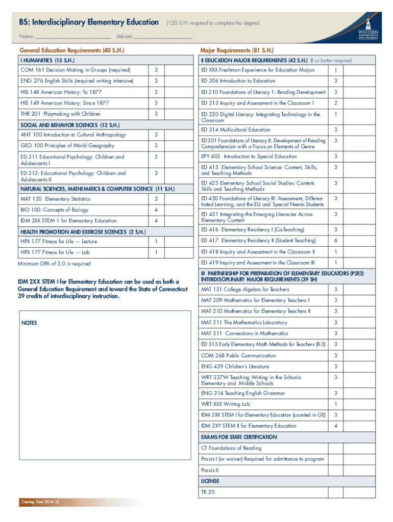 Get the free Interdisciplinary Elementary Education (120 S.H. required ...