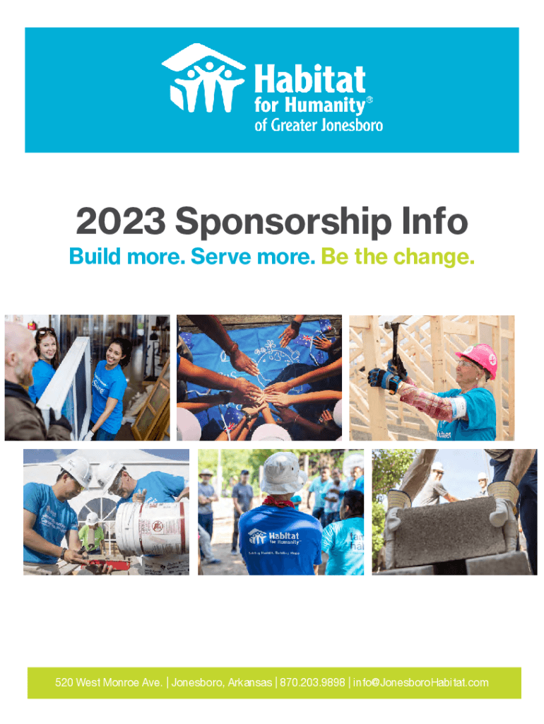 2023 Sponsorship Inbuilt more. Serve more. Be the change.520 West Monroe Ave. | Jonesboro, Arkansas | 870.203.9898 | info@JonesboroHabitat.com2023 FUNDRAISERS With your help, we can do big things.