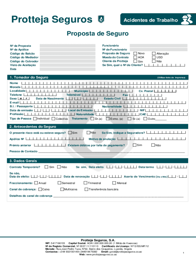 Protect SegurosAcidentes de TrabalhoProposta de Seguro Funcionrio N de Funcionrio Nova Proposed de Segura Moved do Contralto AOA Client the Protect Sim Se Sim, equal o N de Client? N the Proposed