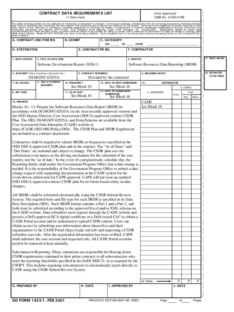 CONTRACT DATA REQUIREMENTS Isoform Approved OMB No. 07040188(1 Data Item)The public reporting burden for this collection of information is estimated to average 110 hours per response, including the