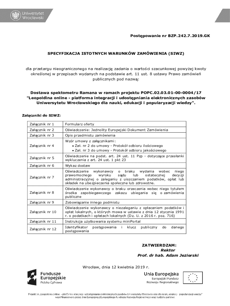 Get the free dla przetargu nieograniczonego na realizacj zadania o wartoci szacunkowej powyej kwoty