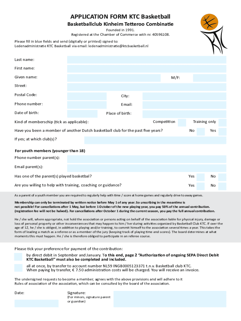 Get the free APPLICATION FORM KTC Basketball