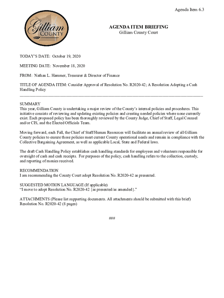 Agenda Item 6.3AGENDA ITEM BRIEFING Gilliam County CourtTODAYS DATE: October 19, 2020, MEETING DATE: November 18, 2020, FROM: Nathan L. Hammer, Treasurer & Director of Finance TITLE OF AGENDA ITEM: