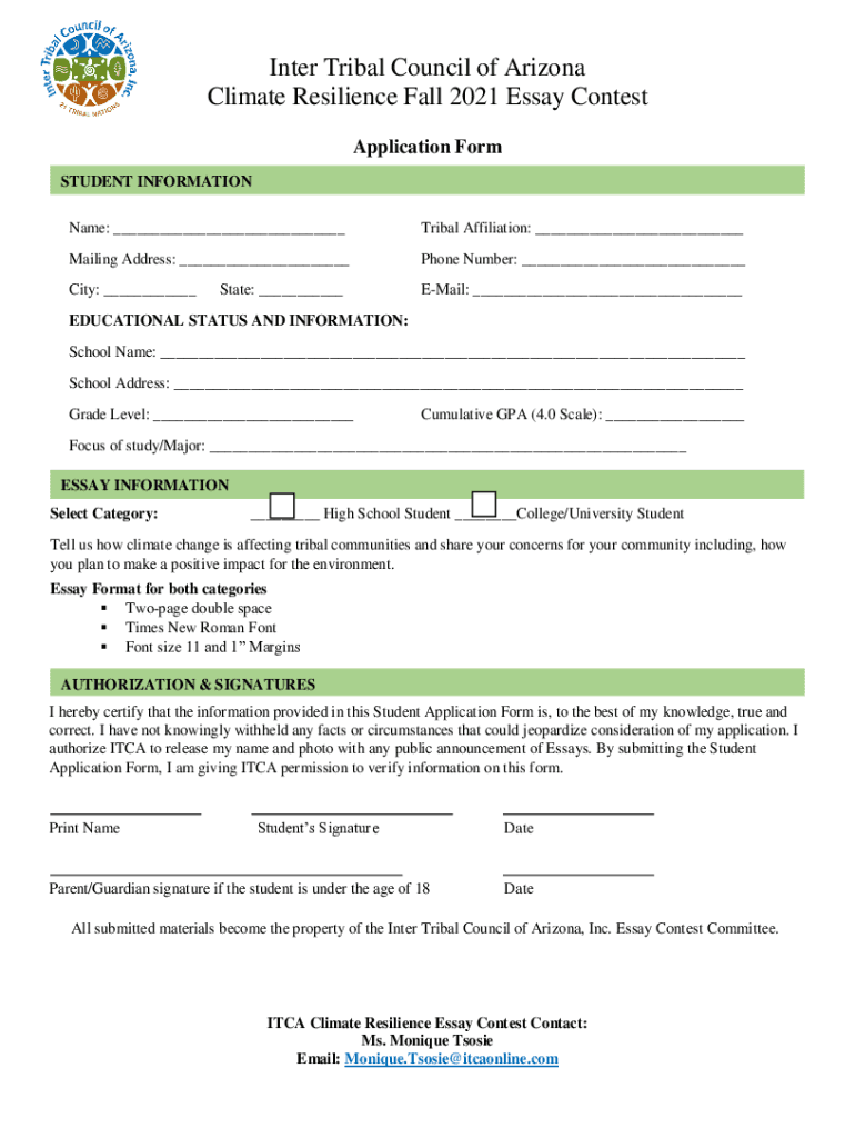Inter Tribal Council of Arizona Climate Resilience Fall 2021 Essay Contest INTRODUCTION: The ITC Climate Resilience project, funded by the Bureau of Indian Affairs (BIA), is delighted to announce