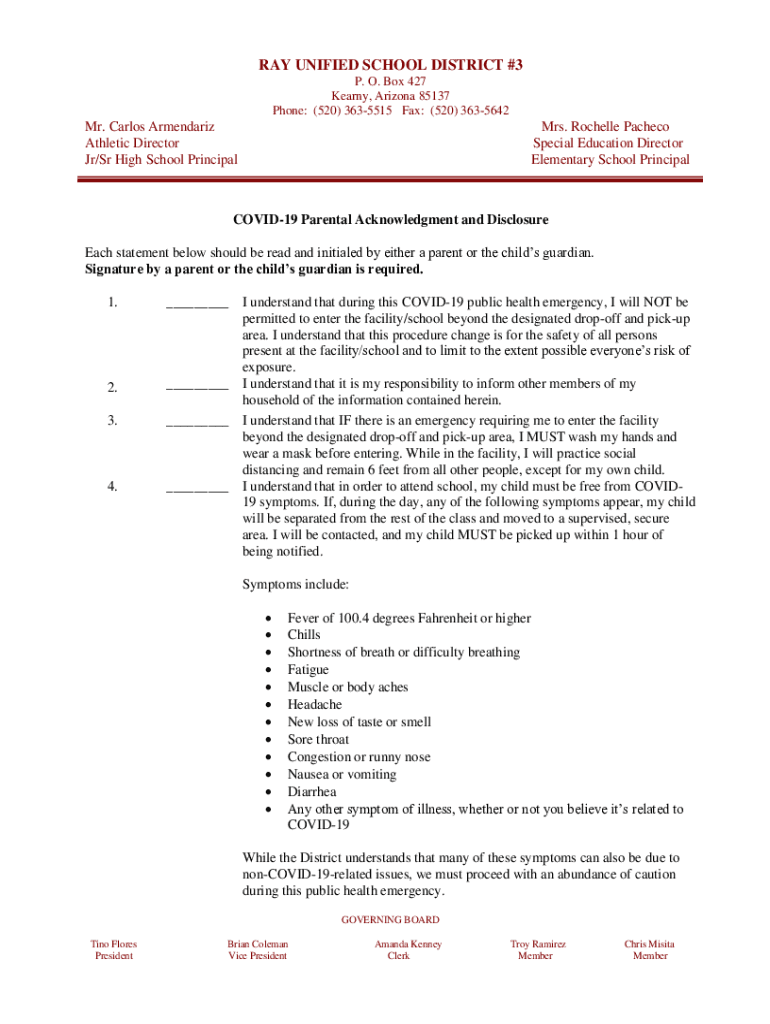 RAY UNIFIED SCHOOL DISTRICT #3 P. O. Box 427 Kearny, Arizona 85137 Phone: (520) 3635515 Fax: (520) 3635642Mr. Carlos Armendariz Athletic Director Jr/Sr High School Principal Mrs. Rochelle Pacheco