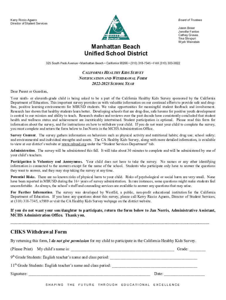 Parents or guardians of students who wish to give consent for their child to participate in CHKS surveys.