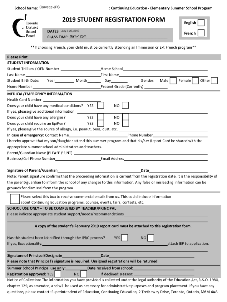 Edit your 2019 student registration form form online