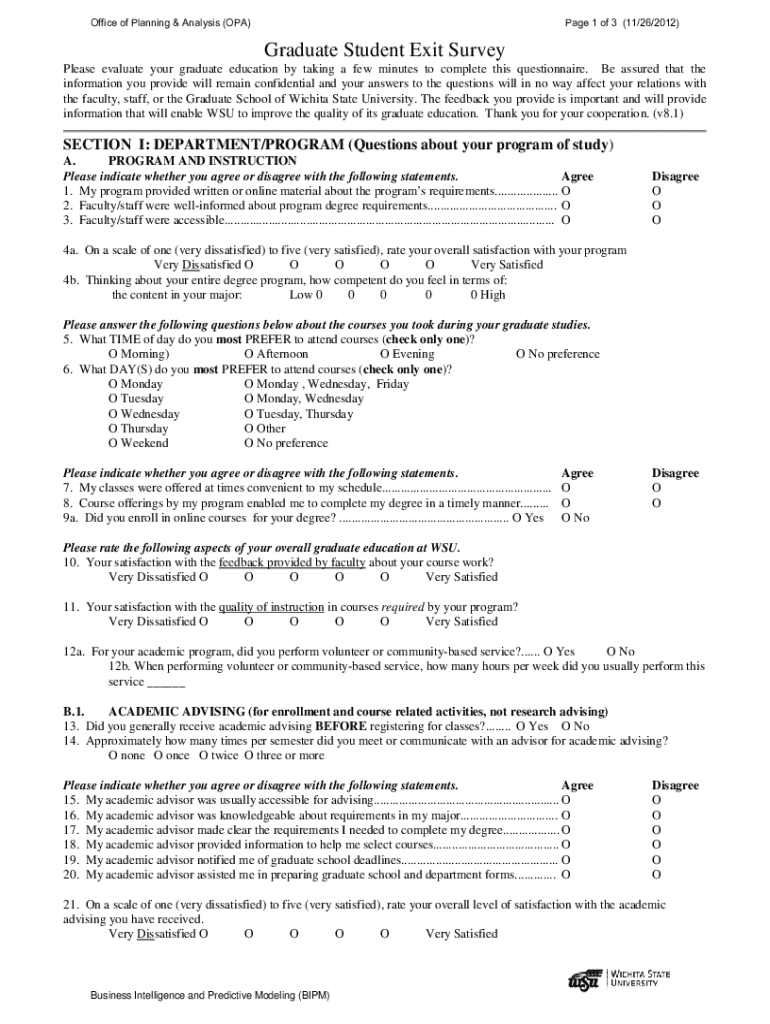 Office of Planning & Analysis (OPA)Page 1 of 3 (11/26/2012)Graduate Student Exit Survey Please evaluate your graduate education by taking a few minutes to complete this questionnaire. Be assured that
