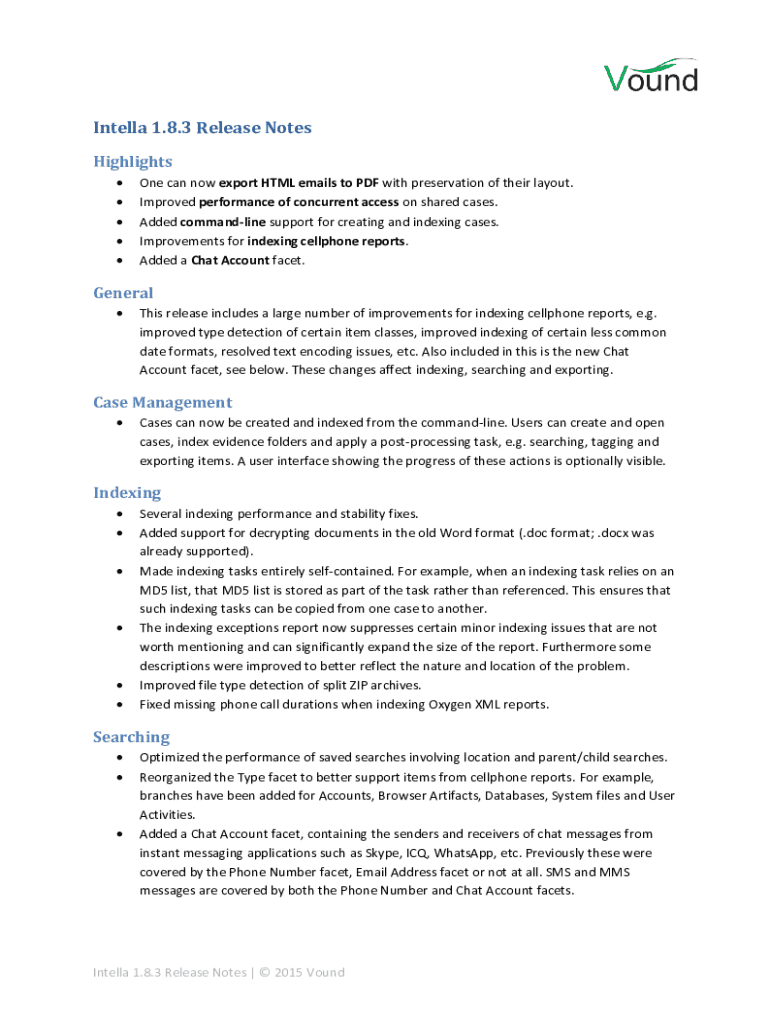 Intel la 1.8.3 Release Notes Highlights One can now export HTML emails to PDF with preservation of their layout. Improved performance of concurrent access on shared cases. Added command line support