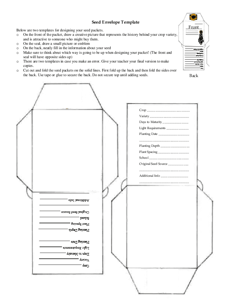 Seal Seed Envelope Template Below are two templates for designing your seed packets. O On the front of the packet, draw a creative picture that represents the history behind your crop variety, and